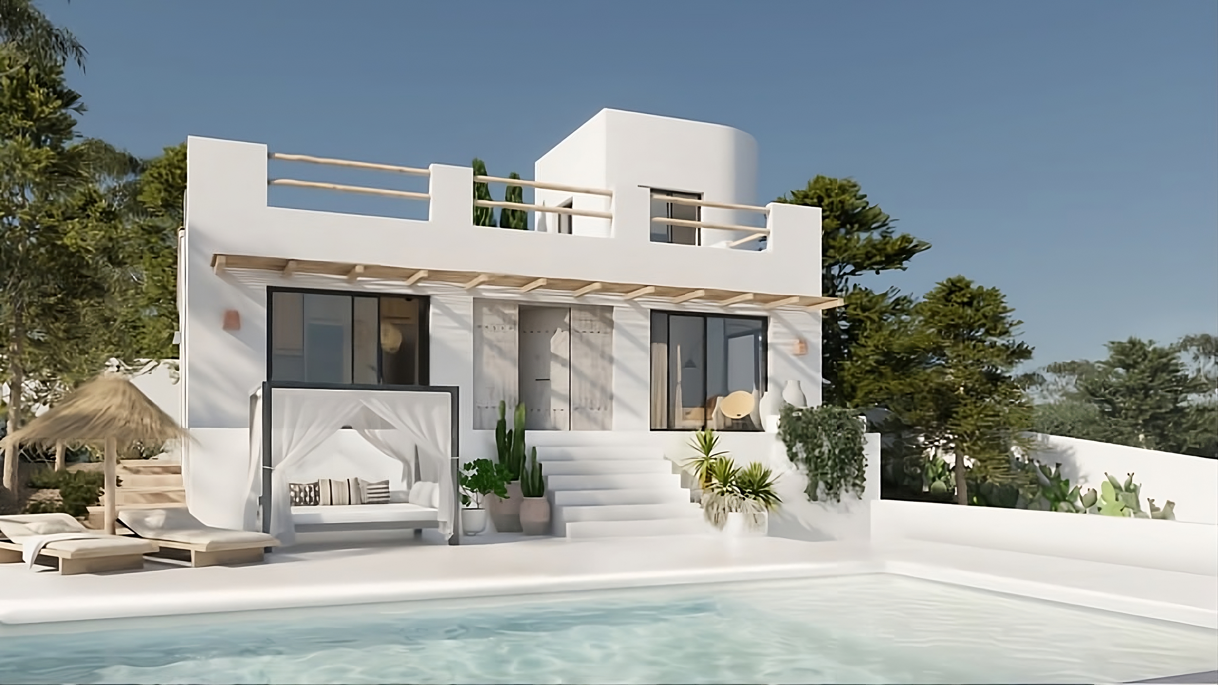 elegantes con la tradición mediterránea. Sus fachadas blancas, símbolo de pureza y simplicidad, capturan y dispersan la luz solar, creando espacios llenos de vida y luminosidad. Las terrazas espaciosas y los ventanales estratégicamente situados ofrecen impresionantes vistas al paisaje circundante, desde el azul intenso del mar hasta la riqueza verde del interior. La utilización de elementos naturales en su construcción y la fluidez de su diseño promueven una conexión íntima con el entorno de Tarragona, encapsulando la belleza y la serenidad de la vida costera a través de una estética contemporánea y refinada.